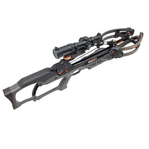 Speed (400gr.): 430 fps - Power-Stroke: 13 - Kinetic Energy: 164 - Draw Force: 12 lbs. - Width Axle-Axle: 6 Cocked - Width Axle-Axle: 10.5 Un-Cocked - Total Length: 34.5 - Physical Weight: 7.1 lbs. - 6 - Ravin Branded .001 Premium Arrows and Ravin Nocks - 1 - Removable Cocking Handle - 1 - Quiver/Mounting Bracket - 6 - 100 Grain Practice Field Points - Built-In Cocking Mechanism - Anti-Dry Fire/Auto Safety - Built-in Sling Mounts - Vortex Strike Eagle Scope - Jack Plate Adjustable Elevation Mount - Riser Level