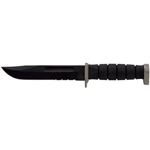 D2 Extreme Fighting/Utility Fixed Knife Black - Clip point - Serrated edge - 7\" blade - Steel blade - Kraton G handle - Sheath carry