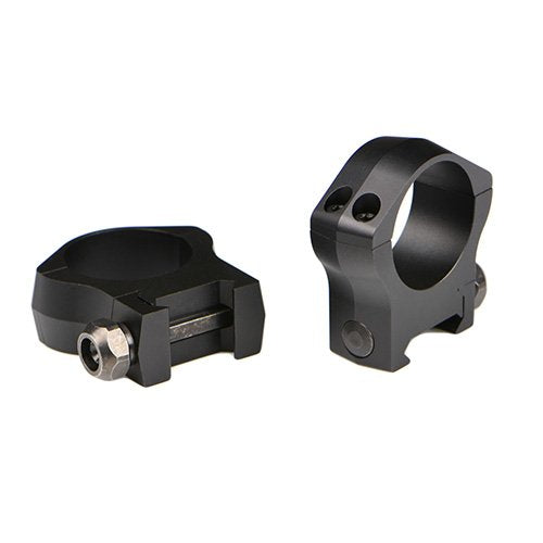 Precision CNC machined from 7075/T6 aluminum for a high strength & lightweight platform - Mil-Spec hardcoat anodized finish for abrasion and corrosion resistance. - Rings feature stainless steel hardware for “Element Proof” protection. - Mil-Spec 65 in/lb. 1/2 tactical nut attachments for securely clamping to the rail. - Fits Picatinny & Weaver style mounts and are NATO-STANAG compatible. - Available for 1 30 and 34mm tube sizes; in Low Medium High and MSR ideal height; For maximum compatibility with most scope/firearm combinations.