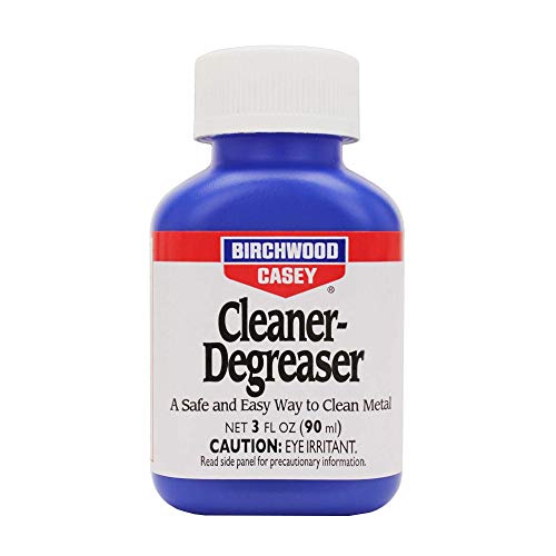 Birchwood Casey Cleaner-Degreaser 3oz Specially formulated to remove dirt fouling grease and oil-quickly and easily. Cleaner-Degreaser is a safe easy and effective way to clean metal. Thorough cleaning and Degreasing is a necessary step before bluing or browning.