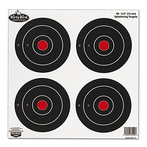 Spot your shots easily! Intense white splatter offers superior downrange contrast. Multiple target facings on one sheet make for more shooting time and less target changing time. 16-3 targets on one convenient sheet. Great for short- or long-range shooting! Heavy tagboard construction. The non-adhesive back also allows you to affix to a surface as you wish add notes and then easily save the targets for future reference. Great for indoor or outdoor use. - 6 Bull’s-Eye 12 Sheets 48 Targets - Spot your shots easily! Intense white splatter offers superior downrange contrast. - Great for indoor or outdoor use. - Heavy tagboard construction.