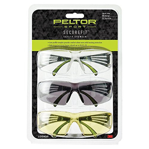 SecureFit 400 Anit-fog Glasses 3 pack w/ One of each: Amber, Clear, Grey - Low Profile - Flexible temples - Lightweight - wraparound lens design - 99.9% UV protection -Polycarbonate construction - Anti-fog coating on lenses