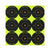 These targets are great for close-range shooting with airguns and sharp shooting with .22 rimfire or centerfire guns. Use the self-adhesive bull’s-eye targets to design your own custom target sheet. - Bullet holes are revealed with bright chartreuse rings. - Self-adhesive backing makes targets easy to put up. - Instant feedback – no need to walk downrange or use binoculars to see your shot. - Great for indoor or outdoor use and low-light conditions.
