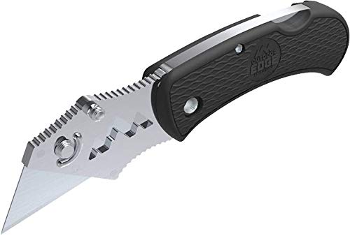 This folding utility knife is a massive upgrade to the classic box cutter—and much much more. The perfect ergonomics along with extensive jimping on the stainless steel blade holder delivers power from your hand directly to the cutting edge. Simply and safely replace blades with a flick of your finger using the safetyguarded thumb button. Accepts all standard utility razor blades. Constructed of 420J2 stainless steel with a sure-grip textured glass/nylon polymer handle with pocket clip. - Blade: 1.0 in / 2.5 cm - Overall: 5.75 in / 14.1 cm - Weight: 2.7 oz / 76.5 g