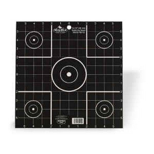 Use this large 12 sight-in target for sighting-in. Five bull’s-eye targets come with aiming points for open or scoped sights making it easy to check different ballistic loads for more shooting fun. Complete with 1 grid pattern and stadia lines making sighting-in a snap. The all-around best sight-in and practice target! - 12 Sight-In 12 Targets - Great for indoor or outdoor use. - Heavy tagboard construction. - Spot your shots easily! Intense white splatter offers superior downrange contrast.